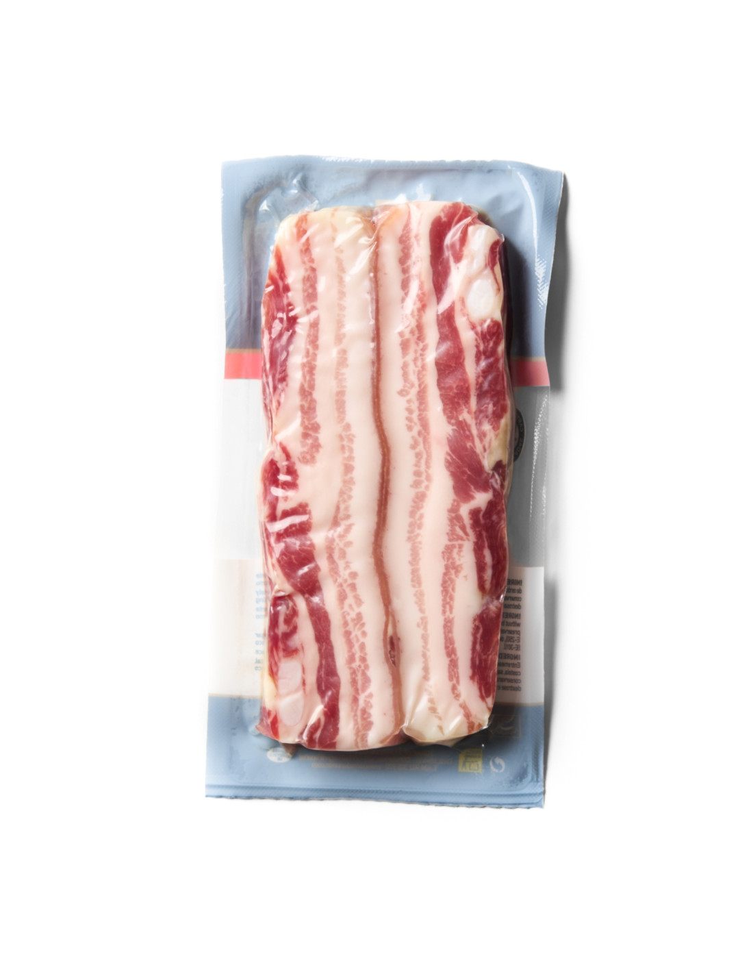 This Salted Panceta, Bacon is made exclusively from high quality Duroc breed pigs, which are characterized by a high level of fat infiltration and fed on a diet based on dry food and cereals. In contrast with other pancetta in the market, this one has no added water.