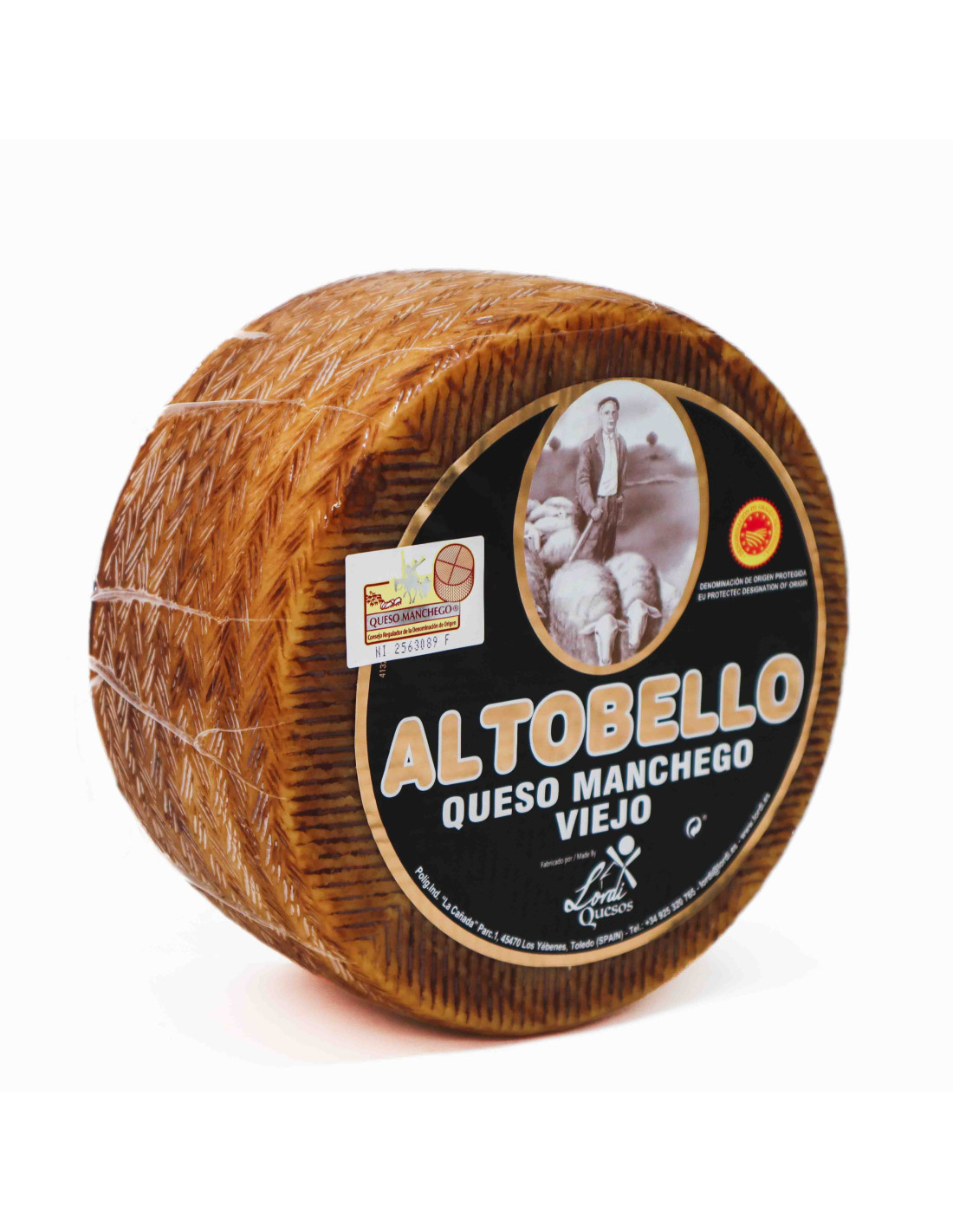 The cheese has a yellow-white, firm, compact texture and a dark-brown, inedible rind and unevenly distributed air pockets. It is officially a "Manchego" cheese and each wedge has its unique ‘Queso Manchego DOP’ identifier.